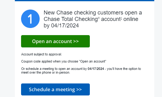 CHASE銀行(JPMorgan Chase)では、新規に当座預金口座(Checking Account)を開設し、一定の条件を満たした顧客に対して$400のキャッシュボーナスを提供するキャンペーンを2026年4月15日まで実施しています。