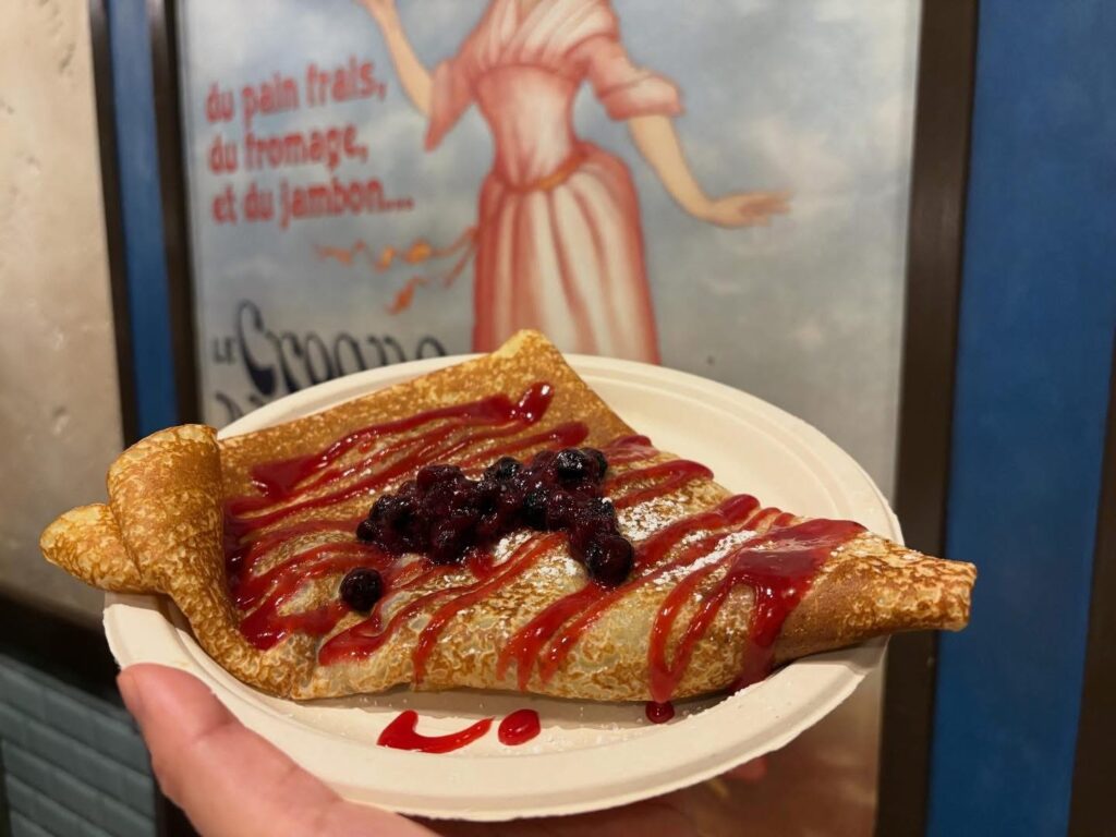 エプコットフランス館の絶品クレープはアメリカのスイーツに比べて甘さ控えめで素材の美味しさを活かした上品な一品!オススメだからぜひ試してみてね〜!
