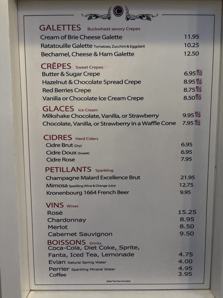 場所はエプコットフランス館、レミーのアトラクションの右手前にあるクイックサービス。外のカウンターから注文するよ!