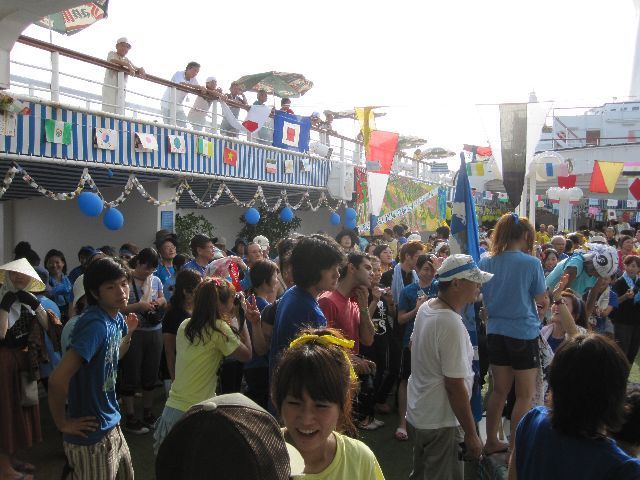 出航して最初のイベントは運動会。船のデッキで盛大に行われるよ。