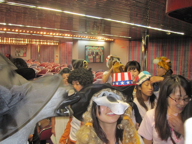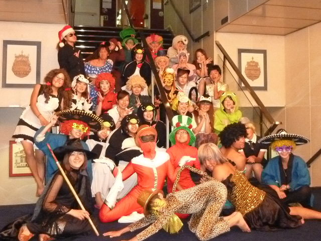 数週間前から船内の楽器で練習する時間も楽しかった。みんな初心者だからコスプレしてカモフラージュ。笑