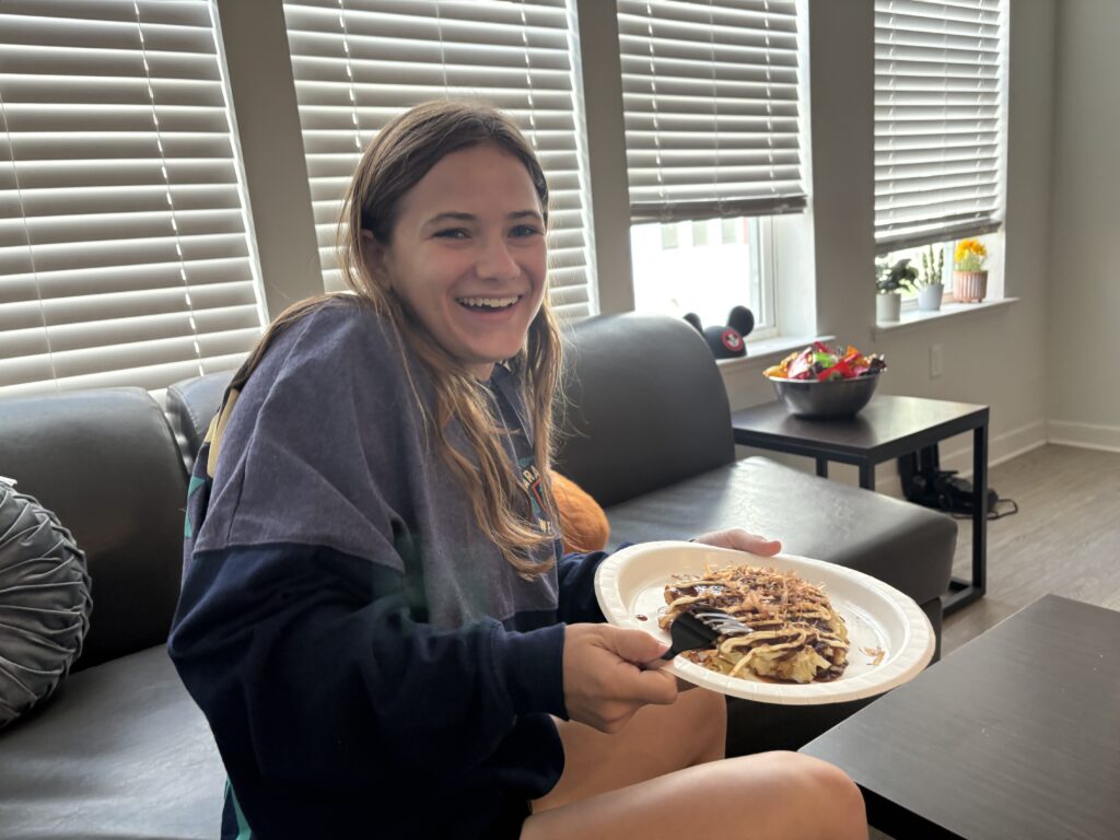 お好み焼きを作ってあげたら喜んでくれて嬉しかったー。タイミング合う時には一緒にランチを食べに行ったりしてるよ。もっと英語上達していっぱいおしゃべりできるようになりたいなー!